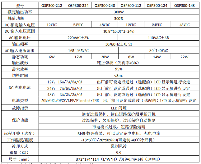 ●多重保護功能,設有交流和直流輸入高低壓保護、過載保護、溫度保護、輸出短路等