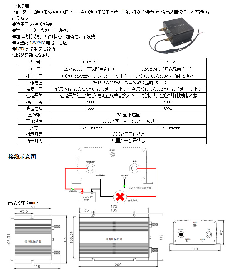 低電壓保護器LVD-152 12/24V