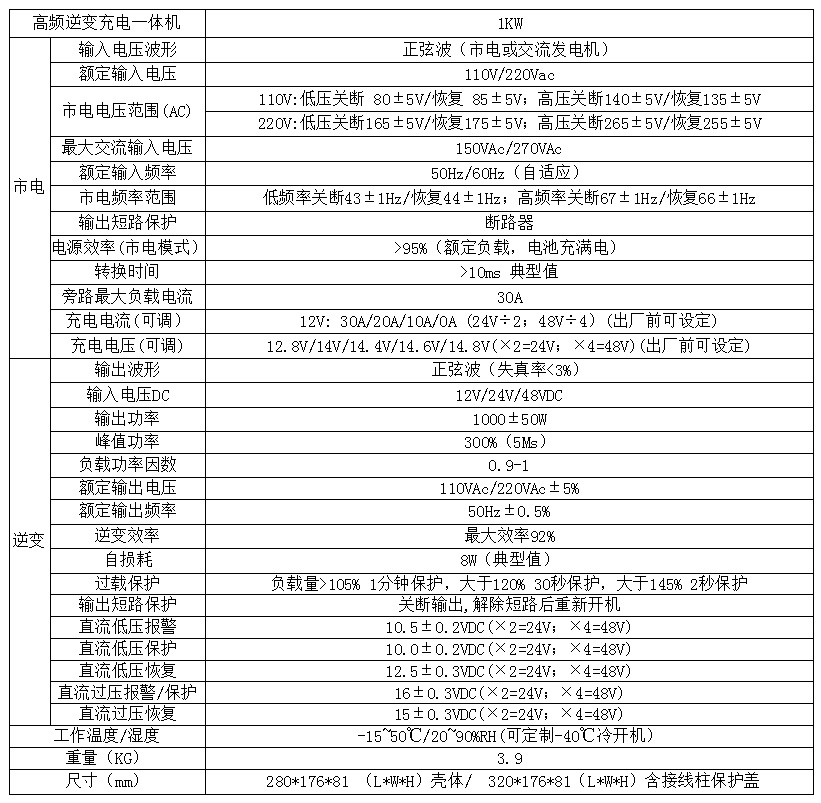 ●市電自啟動(選配)、逆變優先模式(選配)、-40℃冷開機(定制)備注:以上規格參數若有修改,恕不另行通知!